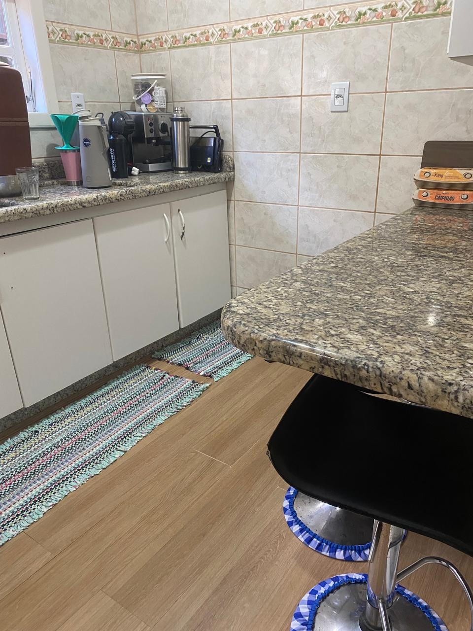 Com 3 dormitórios, sendo um com suíte, sala de estar e jantar, cozinha, banheiro social, lavanderia, garagem para 2 carros, edícula com churrasqueira e banheiro. Permanece no imóvel a seguinte mobília: banheiro suíte: armário aéreo com espelho, balcão com pedra, pia, torneira, box de vidro; banheiro social: armário aéreo com espelho, balcão com pedra, cuba e torneira, box com vidro; cozinha: mesa com tampo em granito, balcão em MDF em L, balcão de pia com 3 metros de pedra, cuba, torneira, fogão de mesa com 5 bocas; banheiro edícula: pia com torneira, box em acrílico; edícula: balcão de pia com cuba e torneira, não averbada. Terreno medindo 369,36m2.